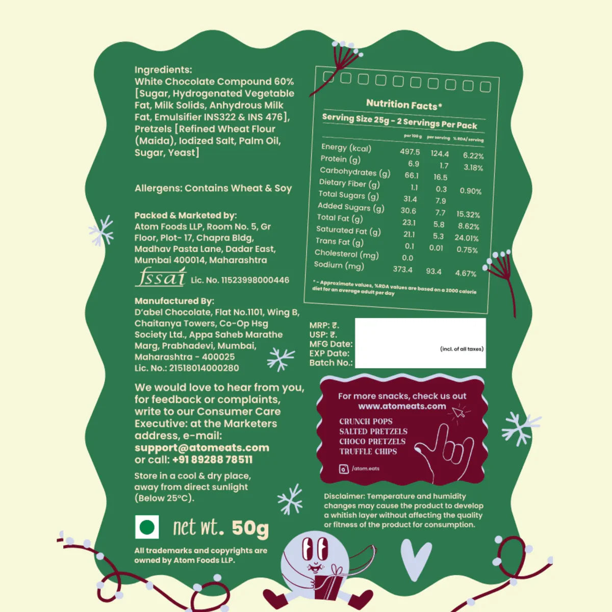 White Choco Peppermint Pretzels (50G Pack)